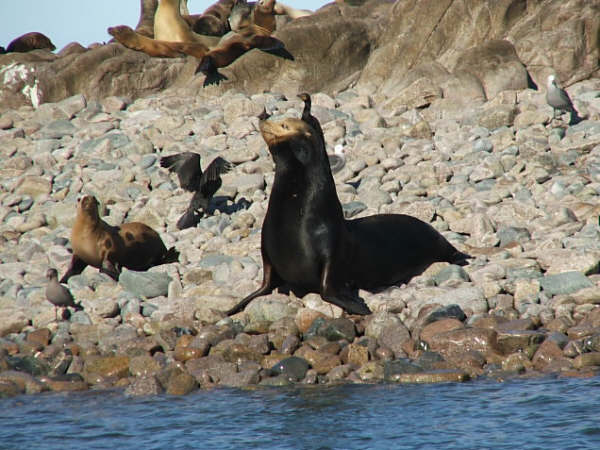 Cuando ves esto es reconfortante saber que ella solo se está luciendo y no esta buscando comida. Puedes ver apreciar la belleza de esta criatura sin estar preocupado porque “tengo que moverme” ya que el lobo marino es tan inofensivo que solo se acerco para que le tomáramos la fotografía..